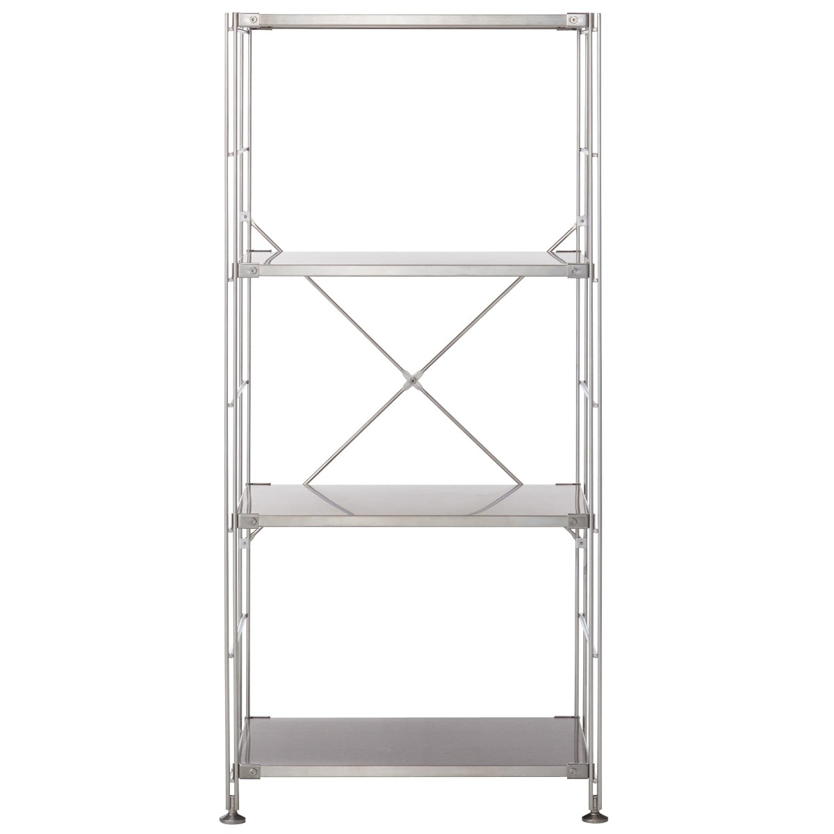 Open shelves made of stainless steel. Modular design so it can be customized by changing the frame, shelves, or coat bar to suit your needs and living space.
