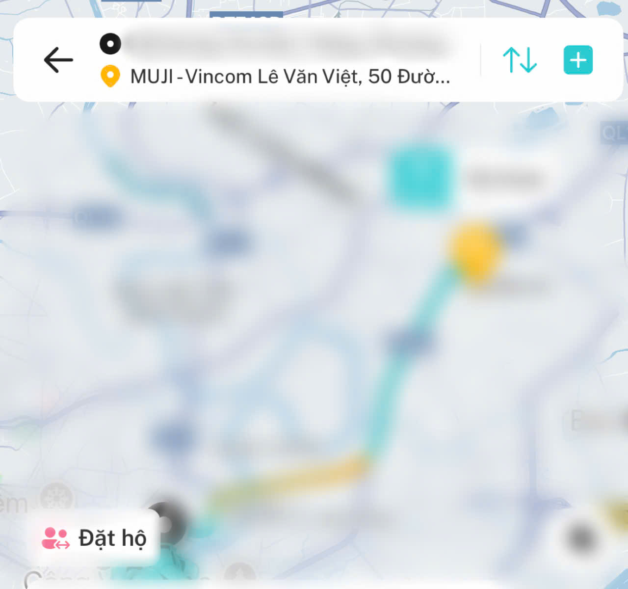 The discount voucher will appear under “Promotions” in the Xanh SM app when the destination is entered exactly (e.g., “MUJI Vincom Lê Văn Việt”)