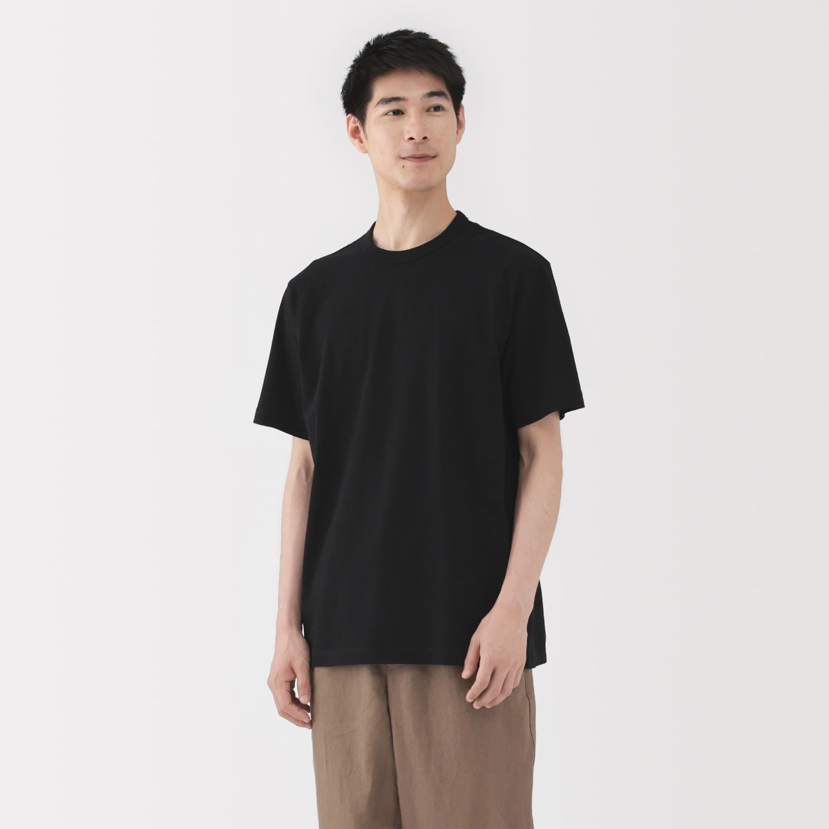MUJI Áo Thun Nam Vải Washed Sợi Dày Tay Ngắn