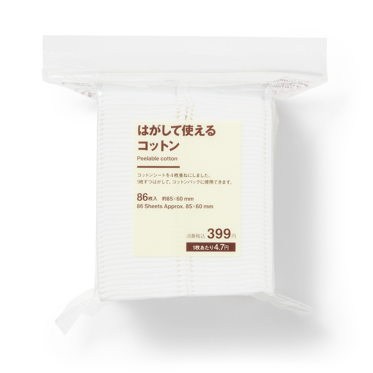 Gồm 4 lớp bông cotton chồng lên nhau. Có thể tách từng lớp để sử dụng riêng cho việc đắp mặt nạ cotton. 86 miếng / Kích thước khoảng 85 × 60 mm