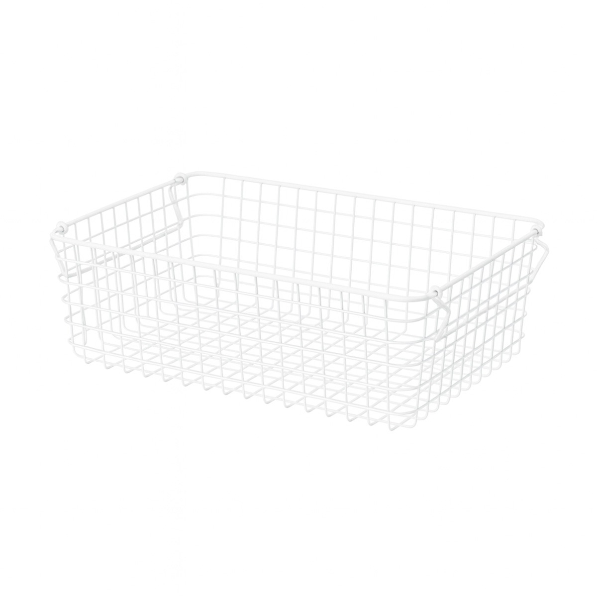 Giỏ đựng bằng thép phủ sơn tĩnh điện chống gỉ. Tay cầm có thể gập vào bên trong để dễ dàng xếp chồng lên nhau.
