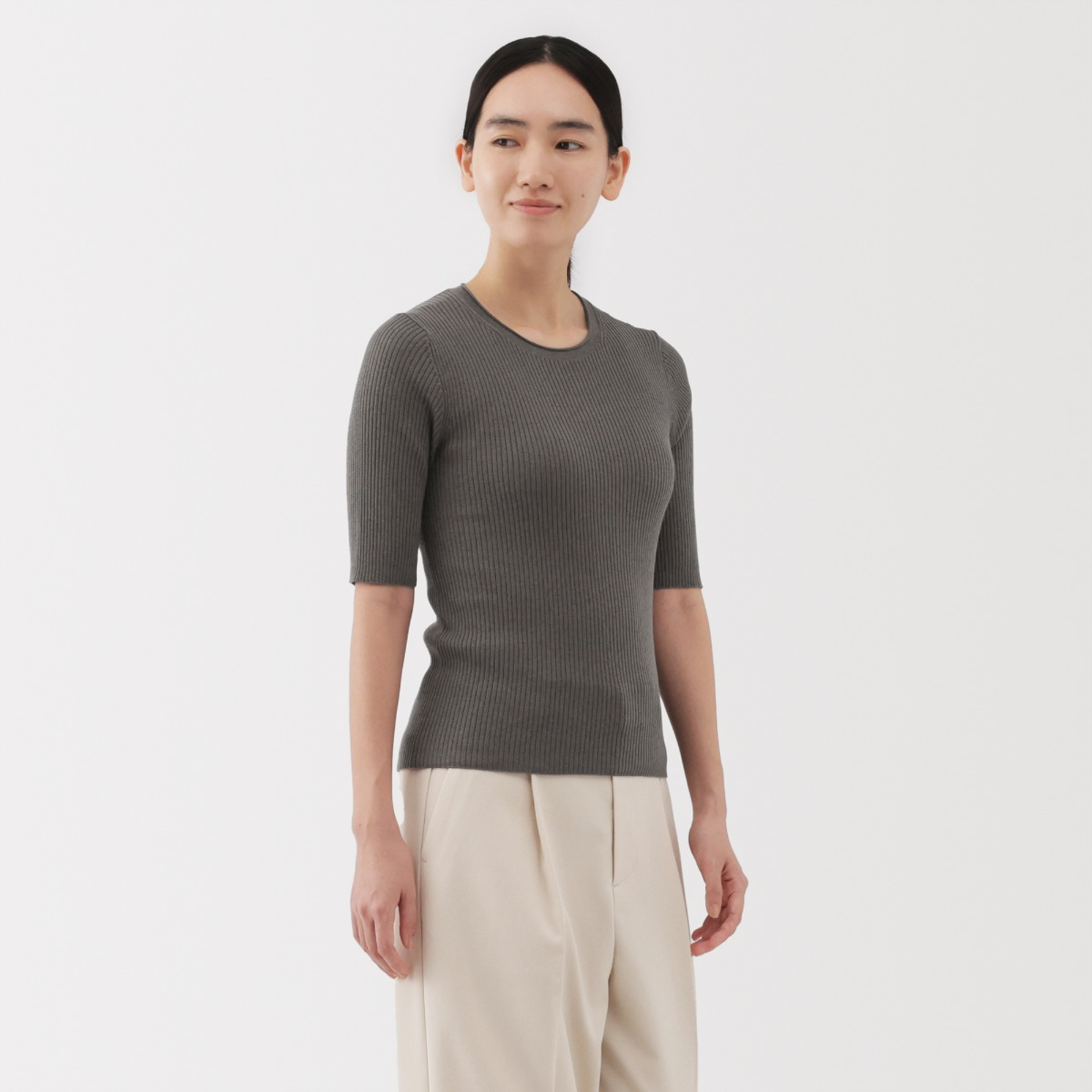 MUJI Áo Len Tay Lửng Phối Lyocell